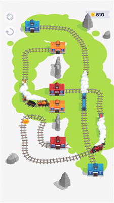 4)游戏鼓励玩家避免重复火车路线,这要求你设计巧妙的路线,以确保火车顺利运行。