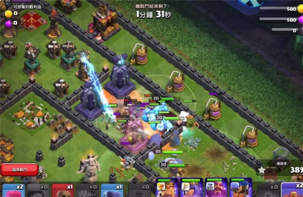飓风结束后再下所有的超级哥布林,同样也是在靠近城墙的一侧下。看准时机给一瓶隐形药水,这样就可以将大本营打掉。