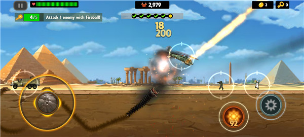 4. 但是人类是不会不甘心的,他们会派军队来破坏,所以你需要躲避各种武器,比如坦克、飞机等等。