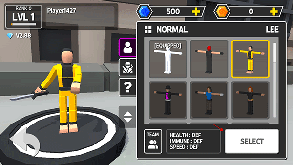 4、你可以编辑各种角色皮肤,有些皮肤是需要解锁的,点击select就可以使用。