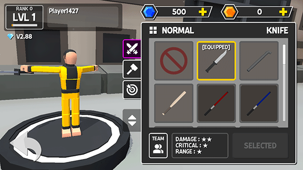 人类大乱斗是一款趣味十足的动作格斗类手游,在游戏中的所有人物都采用橡皮方块人的设定,他们可以做出非常搞笑的打斗姿势,游戏加入了真实的物理引擎让一切的格斗玩法都变得无比真实,小人走起路来都是晃晃悠悠的,增加游戏的趣味性。核心玩法就是:击败场景中的所有人,成为格斗冠军!一局可以匹配8-10个人开展激烈的战斗,可以捡起各种武器来帮助我们提升战力,看看你能打败几个人吧。