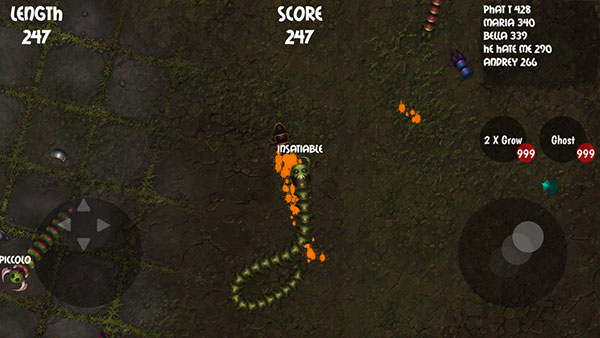 1、贪吃瑞拉移动版完全优化的游戏,带有屏幕操纵杆可调节滑行。