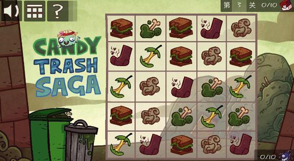 3、第三关:拉拽左侧的垃圾箱,会发现一个咧嘴的东西,再点击这个怪物它就会吧所有的消除东西全部吃掉。