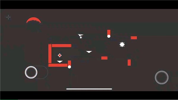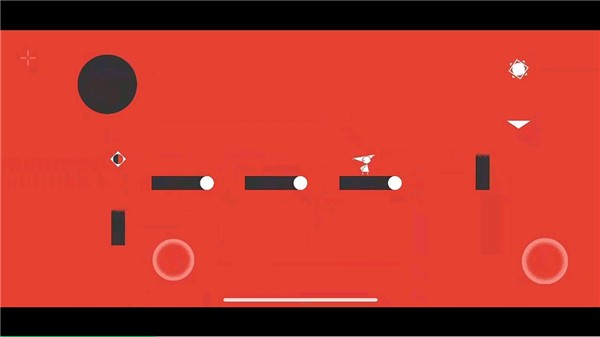 1、第一关,先从左到右跳跃,进入右边的白圈后等待画面变化,再跳跃到左边的白圈即可。