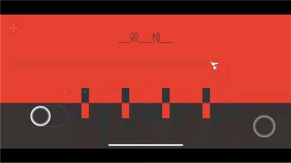 初始教学关卡,本关中的背景一分为二,大家需要关注好上半部分的颜色变化,上半部分背景为黑色,此时跳跃站立的柱子为红色,则代表可以站立;再次跳跃后上半部分背景变为红色,此时跳跃站立的柱子变为黑色,黑色柱子就可以站立了。大家可以根据这一特性初步了解下整体的游戏玩法。