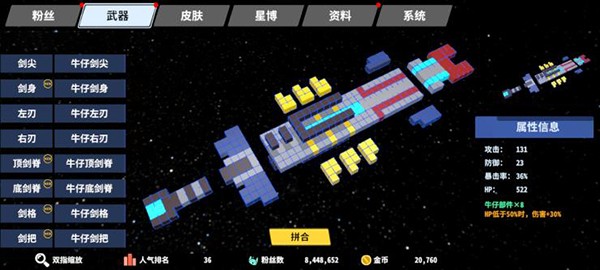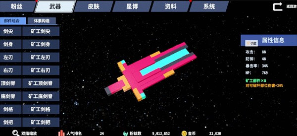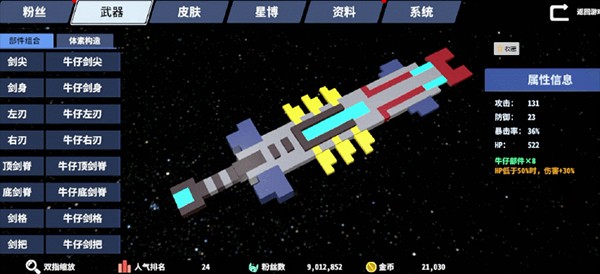 在《星际角斗场》中,我们可以通过【武器部件】这一功能,来自由组建我们的武器,改造它的外观,并赋予它不同的附加效果。武器部件的来源为我们所打败的BOSS身上,击败每击败一个BOSS即可获得相应的武器部件。