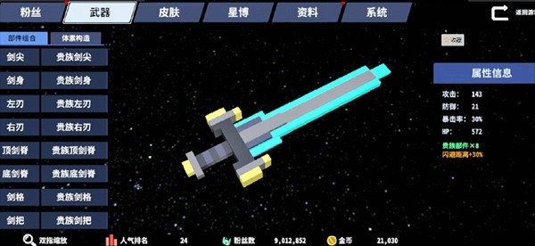 游戏初始,你的武器是一把由我们程序员大佬倾情打造的初始小剑。(美术大佬太忙了,就不麻烦他们了)当然如果你对初始外形不满意,可以收集BOSS掉落的不同部件,按照自己的意愿来搭配各种风格的武器。