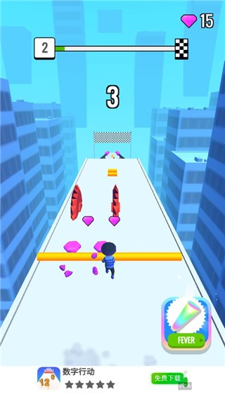 2、在前行的过程中你要不断的使你的木棍变长,穿越重重关卡,以此达到终点。