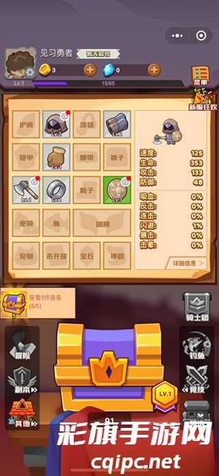 当你的装备越来越多时,右边的小人物也会随之加强