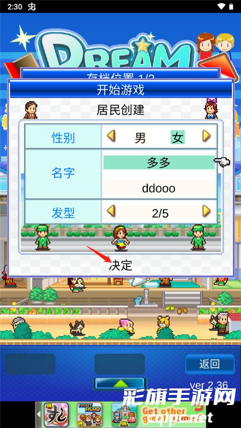 3、创建自己的角色性别、名字、发型,点击决定;