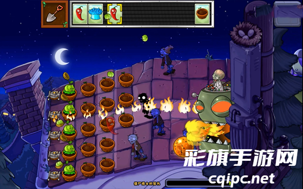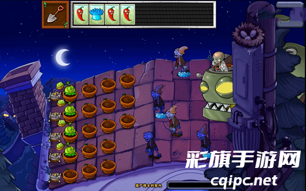 5、这里的僵尸可以控制大的机器人,然后放置僵尸,而植物则是在上面的流动,你需要把它们种植到这里的盆上哦,不再是一块一块的草坪。