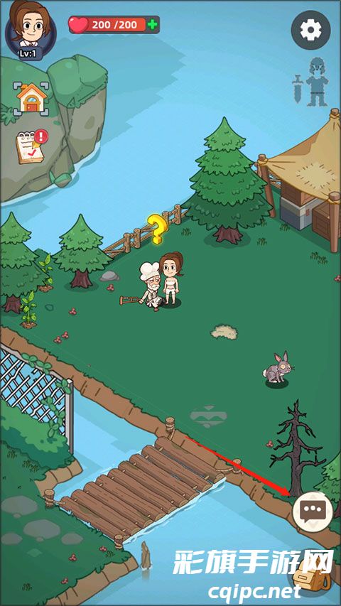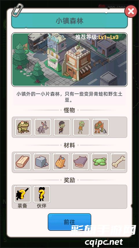 5、当材料不足的时候,玩家需要外出探险来获得,点击右下角的地图,再次点击,前往小镇森林;
