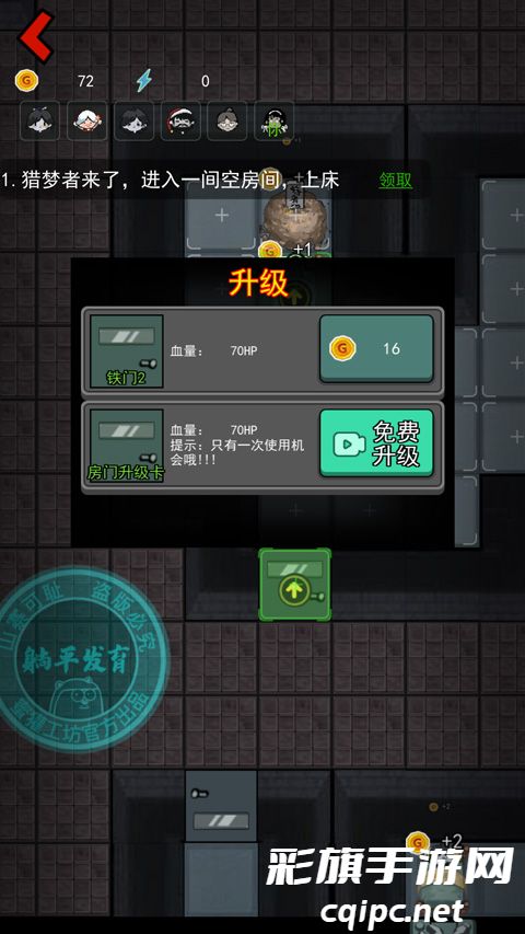 4、开局先升级门,然后建造炮台,其次升级床铺,床铺的等级决定你游戏的成败。