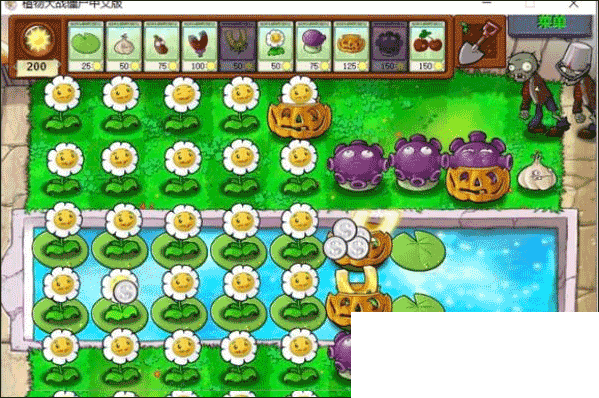 2、开局阵容,留两百个阳光,以免蒜头或者南瓜头被吃掉。