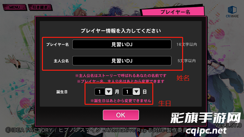 2、然后输入游戏名字以及生日,注意这里点击【ok】后还需要再确认一遍;