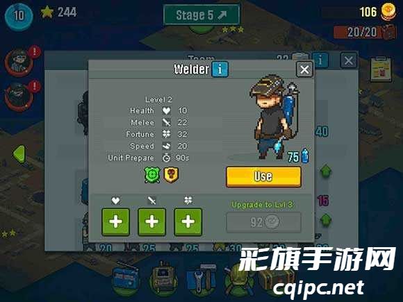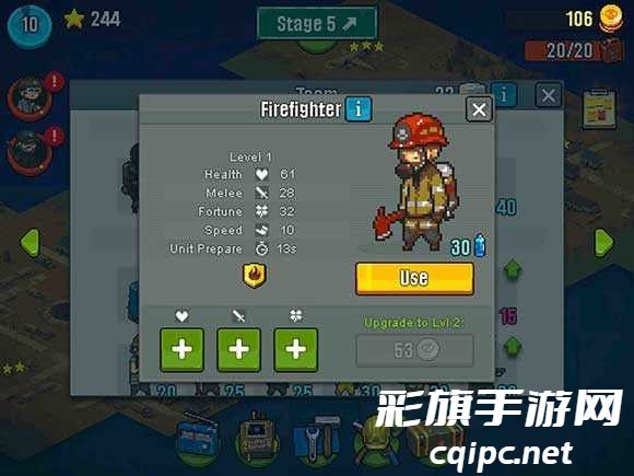 3、有趣的升级模式,击退僵尸提高士气,召唤更多幸存者加入队伍。
