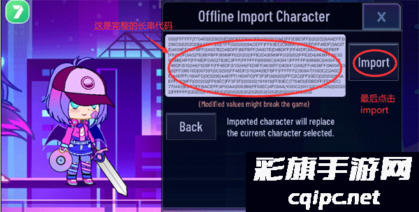 3、框里就会出现长串的代码,这么长才是完整的,最后点击"Import",就可以使用别人分享出来的人设啦!
