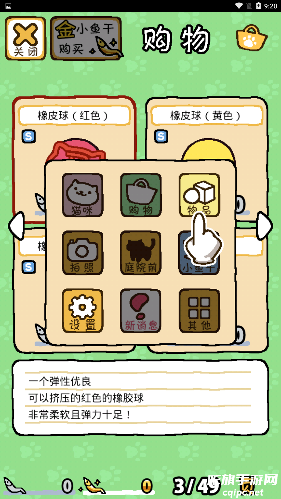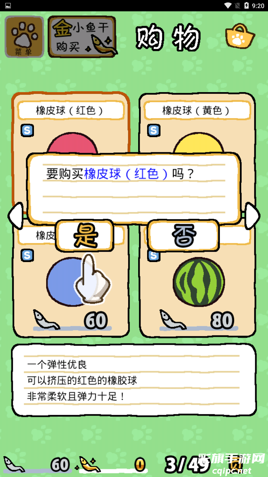 5、进入购物界面,找到像皮球(红色),我们可以使用普通小鱼干购买,