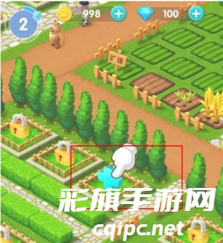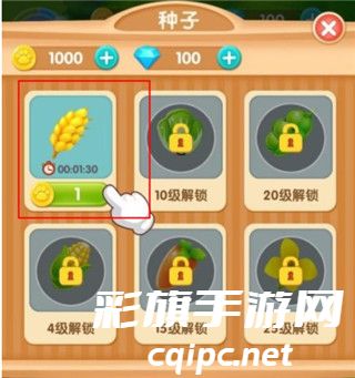 3、接着进入熊熊乐园,点击拾取农产物,然后选择种子,播种到土地里,并给农产物浇水。