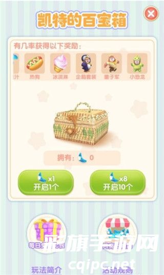 6、使用专属道具月亮石可开启百宝箱,每次开启宝箱需消耗1个月亮石,可使用8个月亮石,一次开启十个宝箱,开启宝箱可随机获得熊熊乐园、玩偶公仔、食物和金币等。