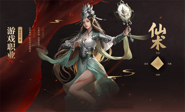 仙术以扇为武器,具有“起死回生强增益”的职业特点,后期有天系、地系、人系三大进阶转职方向。