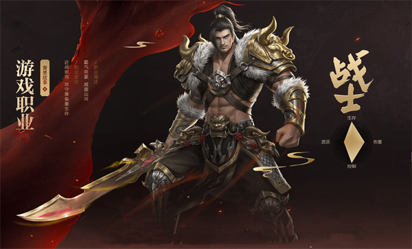 战士以刀为武器,具有“攻守兼备重生存”的职业特点,后期有狂暴系、魔战系、守护系三大进阶转职方向。