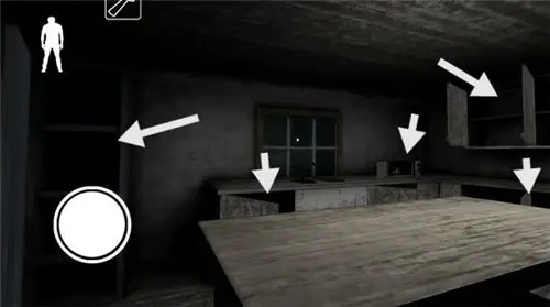 下楼梯后左边的地板上有一根黑线,从上面走过铃铛会响,需要注意。楼梯旁的柜子里可以躲,柜子对面有一个门,里面可能刷东西。柜子旁边有一个门通向地下室(由于画面较暗,所以不大容易发现),同时奶奶的出生地就是地下室,所以萌新不要一开始就往地下室跑哦。最后说明一下,以后就不提示了。墙上的画,照片,小物件等都是可以被碰掉的,所以走路时尽量不要贴墙。