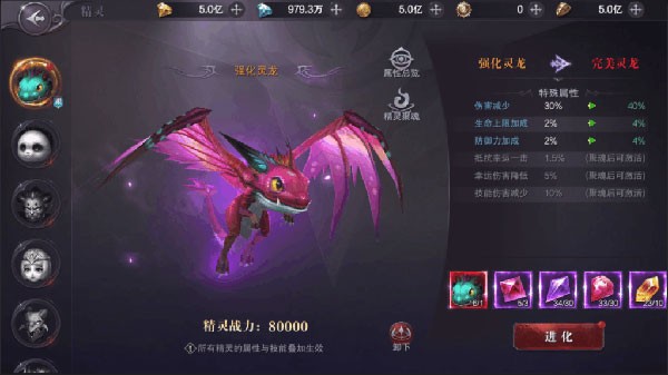 小精灵可以进化和聚魂,进化聚魂后的小精灵将有更强力的属性加成和属性解锁,所有小精灵的属性会互相叠加。