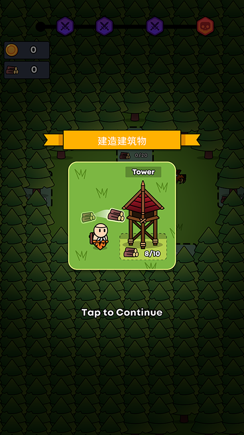 2、开始游戏后玩家只需要采集树木来建造建筑物即可。