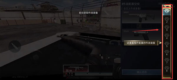 7、另外,背包还可以调整局外配置的作战装备。