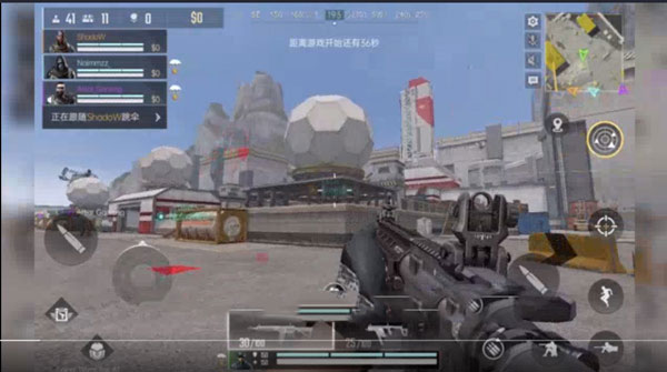 4、右手触控屏幕控制人物镜头方向,使用一键开镜开火击杀敌人。