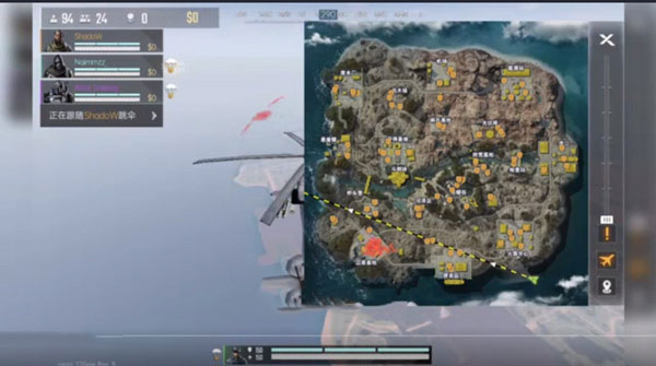 4、调整好后,点击开始游戏,玩家将同自己的三人小队,以及其它玩家乘坐同一架飞机跳到一个孤岛上进行大逃杀。