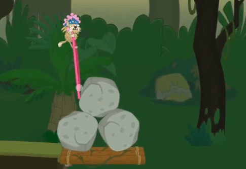 2、小碎步一直蹬地,到达最上面那块石头;