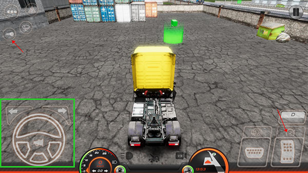 2、先点击左上角的菜单,点击钥匙,启动汽车,然后点击右下角踩油门前进,绿色区域是方向盘。