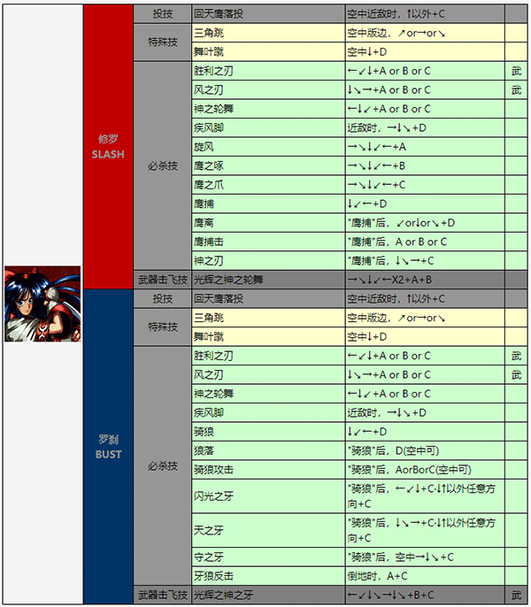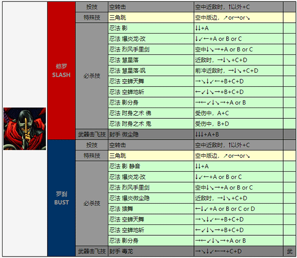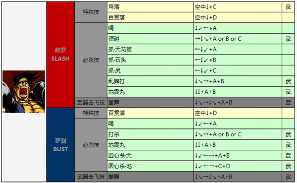 →+C/←+C:破坏对手的防御状态 B+C:不意打(小跳攻击,蹲放不能)