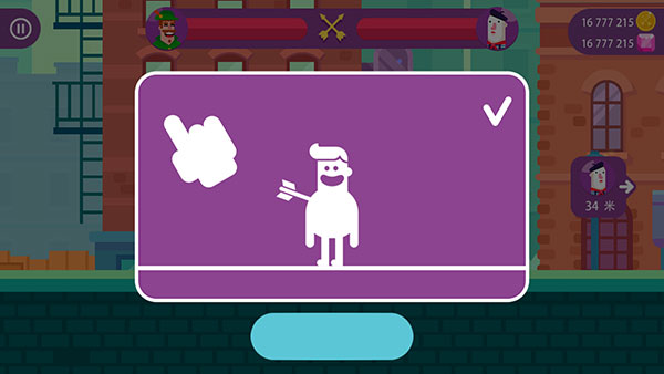 冷血射手Bowmasters为玩家带来丰富多样的人物选择,还支持玩家选择多种不同的武器道具,让玩家可以在决斗中获取强大的战斗力,更轻松地获取战斗胜利,感兴趣的小伙伴快来下载体验一下吧!