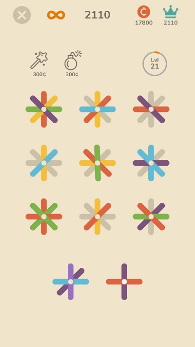 1)通过排列不同颜色的棍棒,测试玩家对颜色的认知和反应能力,是一款智力挑战游戏。