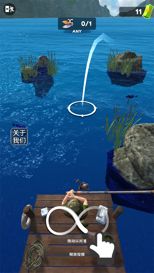 2、之后拖动钓竿对准钓鱼区,点击投掷即可;