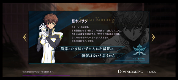 1、打开叛逆的鲁鲁修手游官方正版,游戏需加速器启动,点击屏幕开始;