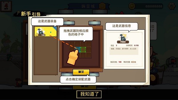 5、过程中还会有小怪物出现,你需要将武器装备拖拽到相应颜色的格子中,然后点击确定即可。