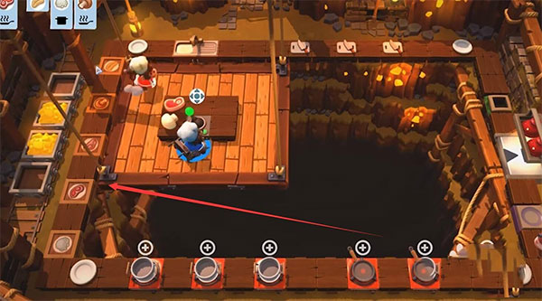 1、首先打开overcooked手机版,提前到左边的桌子上拿好食材;