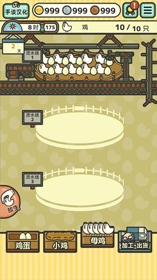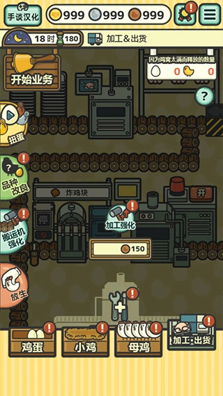 2、而来到夜间之后,可以强化或者制造新的流水线或者增加商品、改良小鸡品种