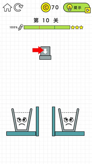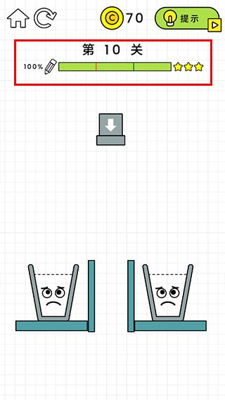 1、下载并打开游戏后,我们需要做的就是让带有箭头的出水口处的水尽可能的流入杯中