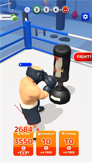 2、选择下方的属性进行升级,每次提升都可以增加各种属性,点击右上方的【FLGHTI】即可进入对战。