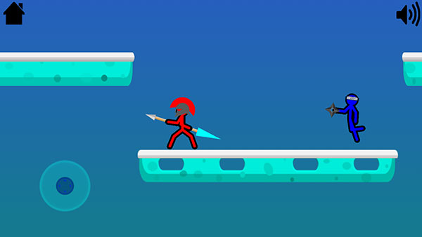 2、开始战斗之后,屏幕上会出现两个虚拟摇杆,分别控制着两位火柴人角色。