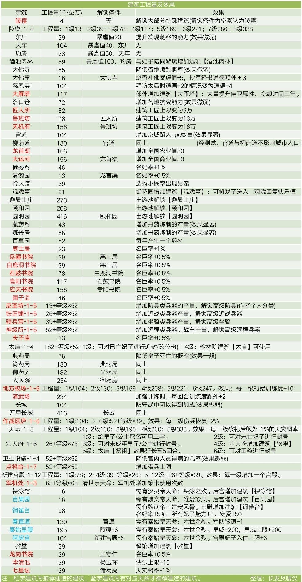 先建有助於刷名臣良将以及优良人才的建筑,然后是打仗练兵、买武器、建军队最大兵额的建设,如:匠人所、各类书院、国子监、寒士舍、夫子庙、皮革坊、铁匠铺、骑兵营、神机所、地方校场、演武场、作战医护、点将台(若皇子皇女出生,可先建典药局)