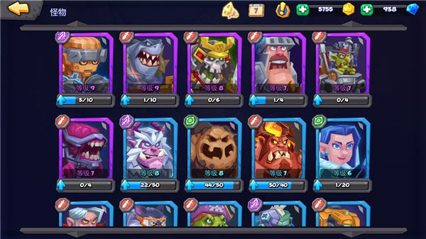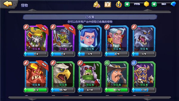 游戏里的怪物升级非常简单,只要凑齐足够的该怪物卡片的数量即可。那么我们该如何获得卡牌呢?最快的自然是开箱子,比如每日的天梯箱子,和冒险副本里的奖励箱子等等,这些都能让你前期能获得大量的卡牌,运气好的话往往能让某一卡牌的等级快速提升。