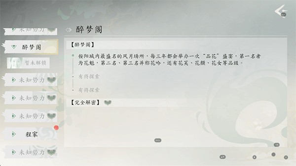 6、在解锁的势力档案中可以帮助你更加了解所处的时代背景和人际关系。