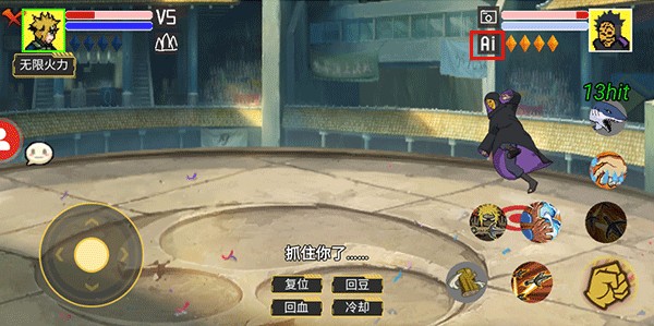 3、选择完后点击“开战”,左下角移动角色,右侧是技能释放;