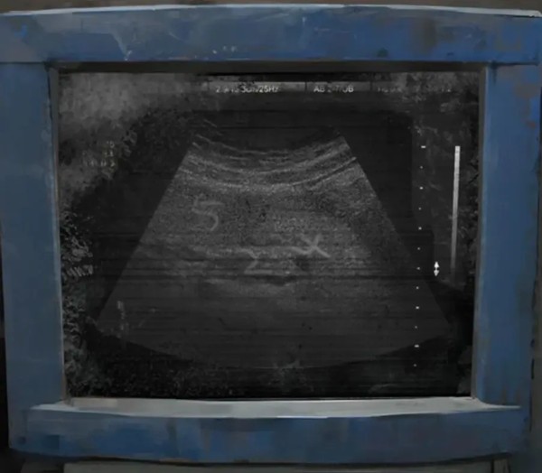 这里的线索是我们二楼的门,门上画的是大脑和肝脏,首先探查一下大脑出现数字【196】,然后谈查一下肝脏出现数字【524】,所以我们就获得了六位数字密码【196524】,我知道你们也想看看其他位置,米雪已经试过了只有心脏有特殊图案,不过和解谜无关,上二楼调整右侧门密码为【196524】开门进入吧。
